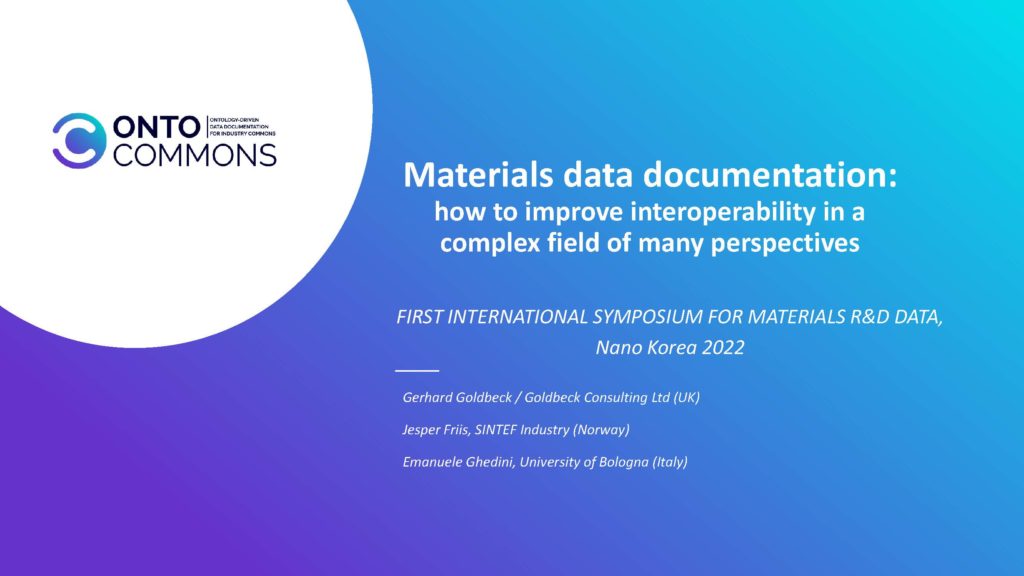 In his role as OntoCommons partner, Gerhard Goldbeck - OntoTrans Technical Manager - also represented OntoTrans in the 1st International Symposium for Materials R&D Data of Nano Korea 2022 organized by the National Center for Materials Research Data of Korea.