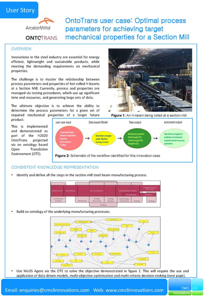 Innovations in the steel industry are essential for energy efficient, lightweight and sustainable products, while meeting the demanding requirements on mechanical properties. The challenge is to master the relationship between process parameters and properties of hot-rolled H-beams at a Section Mill. Currently, process and properties are managed via testing procedures, which use up significant time and resources, and generating large sets of data.